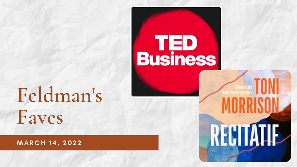 RECITATIF - By Toni Morrison –One of the celebrity meeting highlights of my life was getting the opportunity to meet Toni Morrison in 1995 who had just won the Nobel Prize in Literature and was making her rounds across the world. Following this meeting I read many of her books, including Beloved, which is her most famous. It was only the other week, however that I saw the publication of her one and only short story entitled, RECITATIF. Morrison is famous for taking on the issue of race and bringing her unique perspective and talent to this issue. In RECITATIF, she decides to create an experiment when she tells the story of two eight year old girls who meet at an orphanage and then have chance encounters with each other throughout the course of their lives. What we know is that one girl is white and one girl is black. What we can never fully determine, is which one is which, which is exactly Morrison’s’ point here. Just when you think you figured it out you realize you have no idea. The brilliance of this concept and the way it makes you think is why this story is remarkable. It is really short so I am purposely not providing any plot details. Please read it and let me know what you think. Here is an excellent review from the NYT - https://www.nytimes.com/2022/01/28/books/review/toni-morrison-recitatif.html