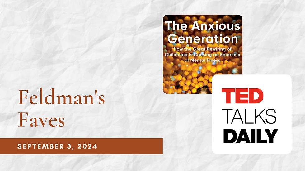 TED Talks Daily Book Club: The Anxious Generation | Jonathan Haidt – For those of you who are interested in the subject but don’t have the time or interest to read the book, this PODCAST does a great job in summarizing the main ideas. Here’s an excerpt from the PODCAST itself, “Join Elise as she interviews TED speakers about their latest books and delves deep into their ideas. Social psychologist Jonathan Haidt's latest book, “The Anxious Generation,” is shaping cultural conversations -- and sparking fierce debates. The #1 NYT best seller investigates the mental health crisis among young people, and argues the cause is clear: a smartphone-based childhood, amplified by overprotective parenting. Informed by Jonathan's work, there is an international movement to limit cellphones in schools and families. But is that the right path forward? And if it is, how do you shift something so socially entrenched? Join Elise, Jonathan and TED Members for a lively exploration of these questions and more.”: https://podcasts.apple.com/ca/podcast/ted-talks-daily/id160904630?i=1000666510623
